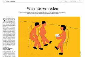 Im Sommer 2025 kontaktierte mich die Süddeutsche Zeitung, um mehr über das Thema Freundschaftstherapie zu erfahren und einen Eindruck zu bekommen, wie therapeutische Sitzungen mit Befreundeten ablaufen. Anhand anonymisierter Fallbeispiele aus der Praxis, bekommen LeserInnen des Artikels einen Einblick in freundschaftstherapeutische Prozesse.